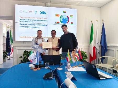 and Dr. Suman Kumari (Senior Scientist)-participated in the High-Level Specialized Training Course on “Improving Safety for Coastal Communities in the IORA Countries” held in Italy from 12 to 19 April 2026. The program was conducted at the Tricase Center (Center for Fisheries and Aquaculture), Lecce (Italy), of the International Center for Advanced Mediterranean Agronomic Studies (CIHEAM), Valencia (Bari, Italy). The objective of the high-level specialized training course was to strengthen the technical and institutional capacities of the representatives from 14 IORA (Indian Ocean Rim Association) member states to improve the sustainable management of coastal communities and ensure safety in the region in the face of climate change and some detrimental anthropogenic pressures on coastal areas. This is a program of IORA within the framework of the IORA-Italy Dialogue partnership and partially sponsored by the government of Italy. The nominations from the institute, selected through an internal process based on work experiences, were forwarded to the organizers through the Ministry of External Affairs, Government of India. Representatives from the Ministry of Fisheries, Animal Husbandry & Dairying, the Ministry of Earth Sciences, Government of India, and various other countries also attended the program. The program facilitated deliberations on critical issues such as coastal safety, disaster preparedness, climate resilience, and sustainable livelihoods. Key sessions focused on early warning systems, risk assessment, nature-based solutions, community-based adaptation strategies, and science-policy integration.