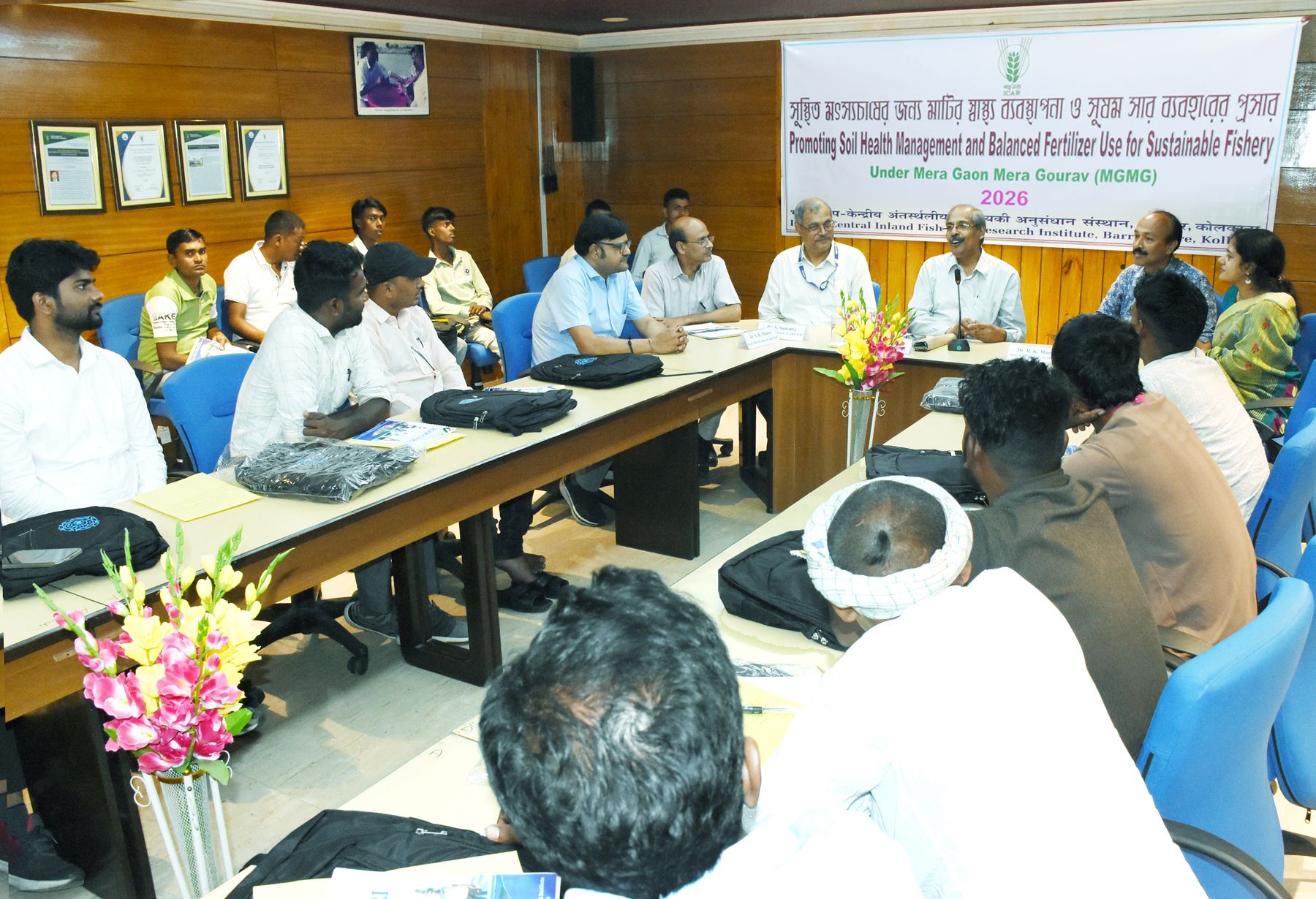 Head of Divisions and experts deliberated on soil as well as aquatic health in details.The awareness programme covered key thematic areas such as the role of nutrients in pond productivity, appropriate types and dosages of fertilisers, integration of organic and inorganic sources, water quality management, and eco-friendly aquaculture practices. Practical demonstrations on water and soil quality assessment, along with exposure to sustainable input management techniques, were also conducted to enhance farmers’ understanding.