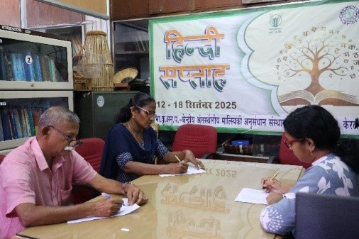 संस्थान के कोच्चि केंद्र में 12 से 18 सितंबर, 2025 तक “हिंदी सप्ताह” का सफलतापूर्वक आयोजन किया गया। आयोजन का शुभारंभ 12 सितंबर, 2025 को एक उद्घाटन कार्यक्रम से हुआ, जिसके उपरांत आई सी ए आर– केंद्रीय समुद्री मात्स्यिकी अनुसंधान संस्थान, कोच्चि की वरिष्ठ तकनीकी सहायक (राजभाषा) श्रीमती प्रिया के.एम. द्वारा “हिंदी राजभाषा का महत्व” विषय पर व्याख्यान प्रस्तुत किया गया। व्याख्यान में प्रशासनिक कार्यों, जनसंचार तथा राष्ट्रीय पहचान के संवर्धन में हिंदी के महत्व पर प्रकाश डाला गया तथा इसे एक बहुभाषी राष्ट्र में एकता को प्रोत्साहित करने, पारदर्शिता सुनिश्चित करने और सरकारी सेवाओं को जनता तक सुलभ बनाने के प्रभावी माध्यम के रूप में रेखांकित किया गया।