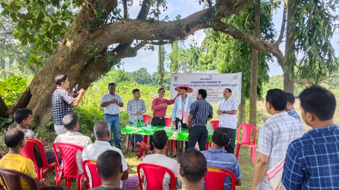 On the occasion of successful harvest of fishes reared in pens, a Field Day on “Harvest of fishes reared in Pens” and an awareness program on 'Pen culture in beels for livelihood' was organized on 14.10.2025 at Tamranga beel. The programme was organized under the overall guidance of Dr. B. K. Das, Director, ICAR-CIFRI, Barrackpore; Dr. S. K. Majhi, Head and Dr. B. K. Bhattacharjya, Principal Scientist, ICAR-CIFRI RC, Guwahati. It was coordinated by Dr. Pronob Das, Senior Scientist; Dr. S. Borah, Scientist and Mr. M. Hoque, YP-II, ICAR-CIFRI RC, Guwahati. Shri Harun Rashid Mondal, Sub-Divisional Fishery Officer, Abhyapuri, Bongaigaon district, Govt. of Assam graced the Programme. Mr. P. Kalita, Fishery Development Officer of the district also joined the programme. The programme was attended by 60 people including beel lessee, fish farmers, officials, and Scientists.
