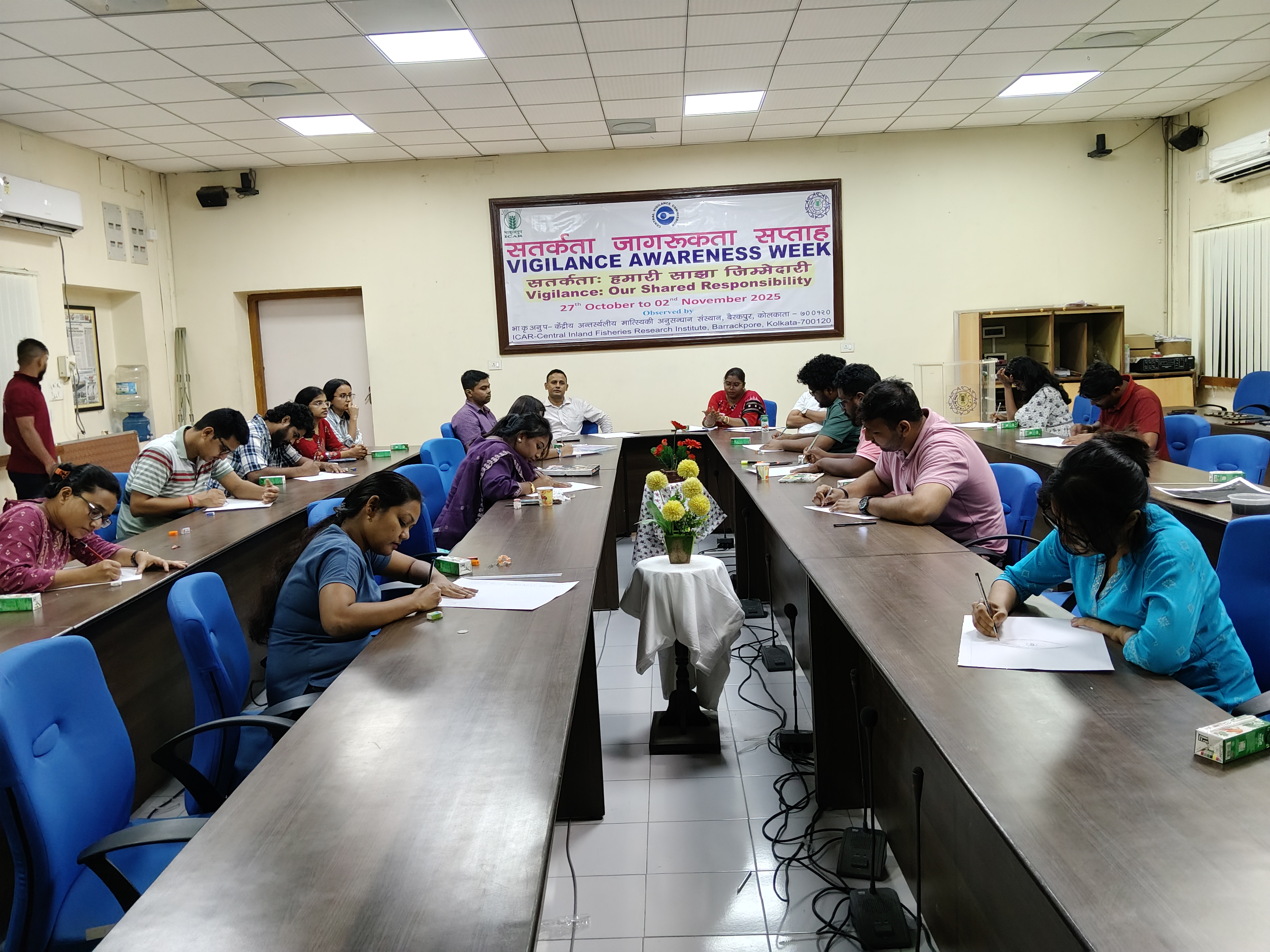 In observance of Vigilance Awareness Week 2025, ICAR-CIFRI, focusing on the theme area "Vigilance: Our Shared Responsibility. A drawing competition was organised on 28th October 2024 among the CIFRI staff aimed at promoting awareness about the impact of corruption on society and encouraging ways to report it. Director ICAR-CIFRI Dr. Basanta Kumar Das, encouraged all the members of ICAR-CIFRI family to participate. The event saw enthusiastic participation from our staff (14 Nos.), showcasing their creativity and commitment to the theme. The drawing competition was centred around the theme: “Vigilance: Our Shared Responsibility.” The initiative was not only a platform for artistic expression but also a means to engage staff in meaningful dialogue which emphasizes the collective role of individuals and organizations in promoting integrity, accountability, and transparency. The event was coordinated by Dr. Dhruba Jyoti Sarkar, Dr. Pritijyoti Majhi, and Ms. Sadrupa Bhwumik, whose efforts ensured the success of the program. Staff members displayed their insights and creativity through various artworks that highlighted the significant consequences of corruption and the importance of vigilance. We commend all participants for their valuable contributions and for embodying the spirit of integrity during this important week.