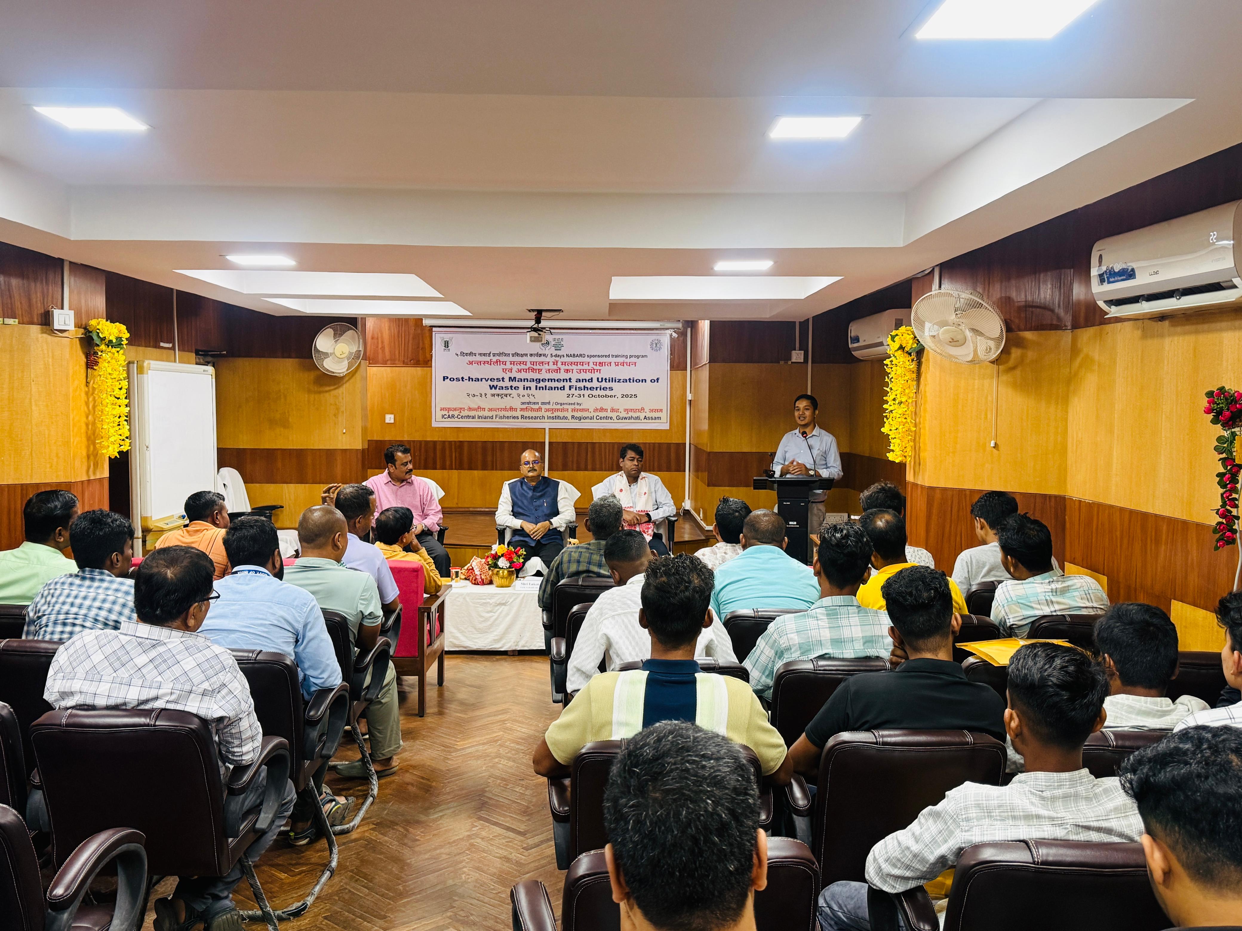 The ICAR–Central Inland Fisheries Research Institute (CIFRI), Regional Centre, Guwahati organized a five-day NABARD-sponsored training programme on “Post-harvest Management and Utilization of Waste in Inland Fisheries” during 27–31 October 2025 premises of the Centre located at HOUSEFED Complex, Dispur.