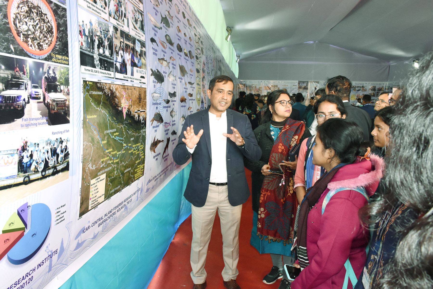 A key highlight of the meet was the release of books and awareness leaflets developed under the Namami Gange Programme, followed by the felicitation of the eminent guests. A distinctive feature of the event was the daily conduct of “Ganga Ranching,” during which native fish species were released as both a symbolic and practical step towards stock enhancement and biodiversity conservation. To promote environmental awareness among the younger generation, a “Ganga Quiz” was organised for school students, which witnessed enthusiastic participation. During Ganga Fishers-Academia-Research Conclave, fishers across the country joined in large number.