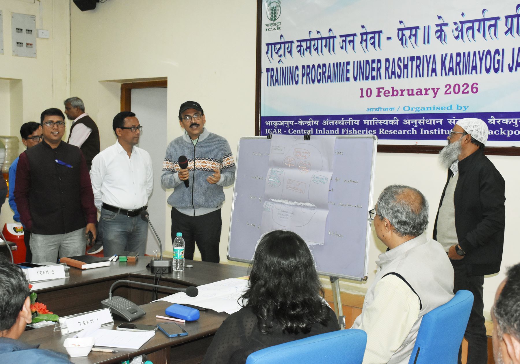 The ICAR–Central Inland Fisheries Research Institute (ICAR-CIFRI) organized a day-long Training Programme under Rashtriya Karmayogi Jan Seva Phase-II at its headquarters with the objective of strengthening professional competence and improving public service delivery. A total of 43 employees participated in the programme, comprising 21 scientists, 11 technical officers, seven administrative officials and four skilled support staff, reflecting the institute’s inclusive approach to capacity building across all cadres.