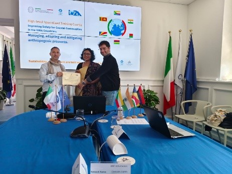 and Dr. Suman Kumari (Senior Scientist)-participated in the High-Level Specialized Training Course on “Improving Safety for Coastal Communities in the IORA Countries” held in Italy from 12 to 19 April 2026. The program was conducted at the Tricase Center (Center for Fisheries and Aquaculture), Lecce (Italy), of the International Center for Advanced Mediterranean Agronomic Studies (CIHEAM), Valencia (Bari, Italy). The objective of the high-level specialized training course was to strengthen the technical and institutional capacities of the representatives from 14 IORA (Indian Ocean Rim Association) member states to improve the sustainable management of coastal communities and ensure safety in the region in the face of climate change and some detrimental anthropogenic pressures on coastal areas. This is a program of IORA within the framework of the IORA-Italy Dialogue partnership and partially sponsored by the government of Italy. The nominations from the institute, selected through an internal process based on work experiences, were forwarded to the organizers through the Ministry of External Affairs, Government of India. Representatives from the Ministry of Fisheries, Animal Husbandry & Dairying, the Ministry of Earth Sciences, Government of India, and various other countries also attended the program. The program facilitated deliberations on critical issues such as coastal safety, disaster preparedness, climate resilience, and sustainable livelihoods. Key sessions focused on early warning systems, risk assessment, nature-based solutions, community-based adaptation strategies, and science-policy integration.
