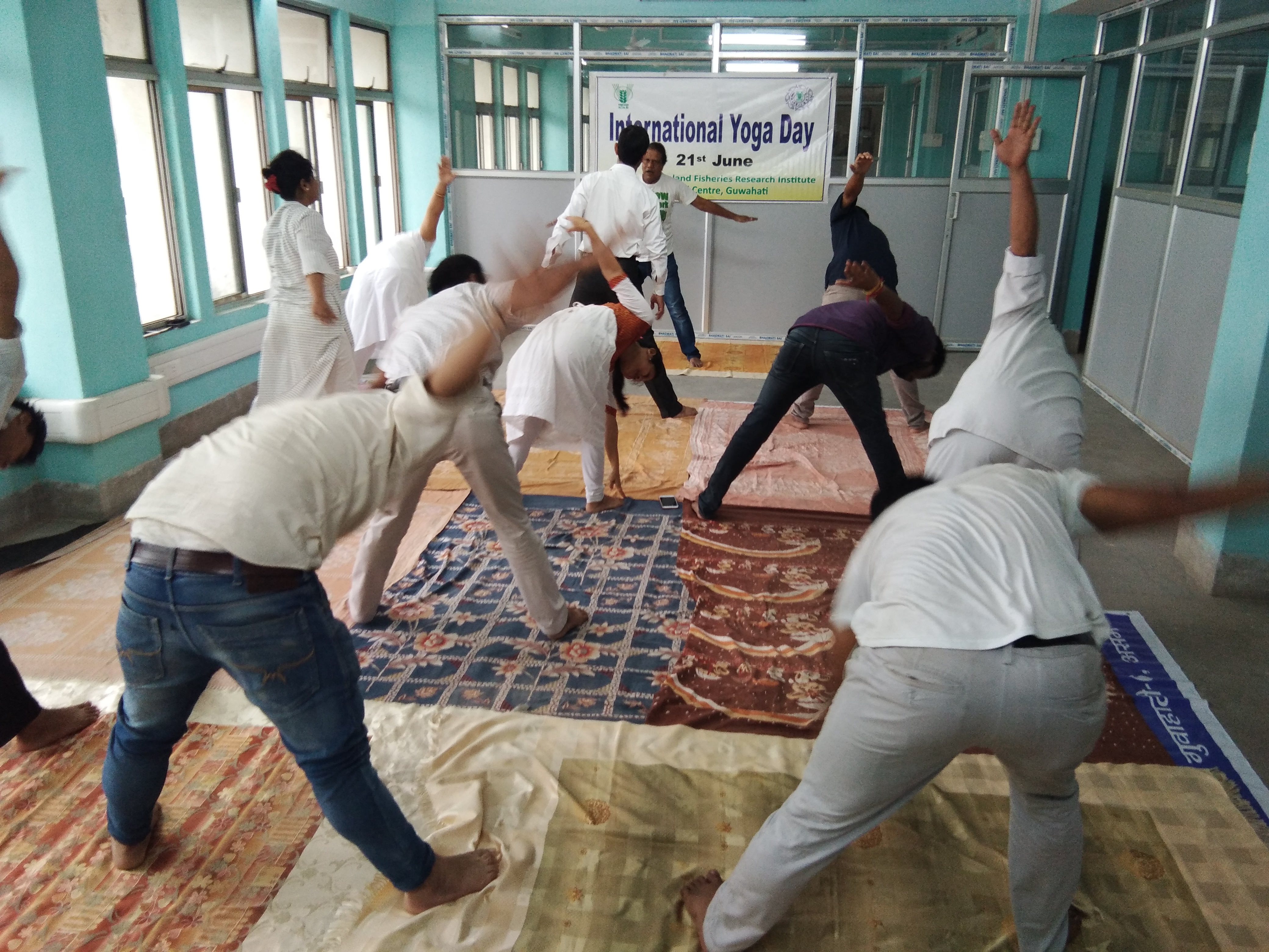 Earlier, on 20th June, 2019 a lecture session on, "Health benefits of Yoga" was also organized for the physical and mental health benefits of members of ICAR-CIFRI family. Participants clarified their doubts by asking questions on the specific yoga for specific health related benefits. ICAR-CIFRI regional centres Guwahati, Allahabad, Bangalore and Vadodora also celebrated yoga day on this occasion.