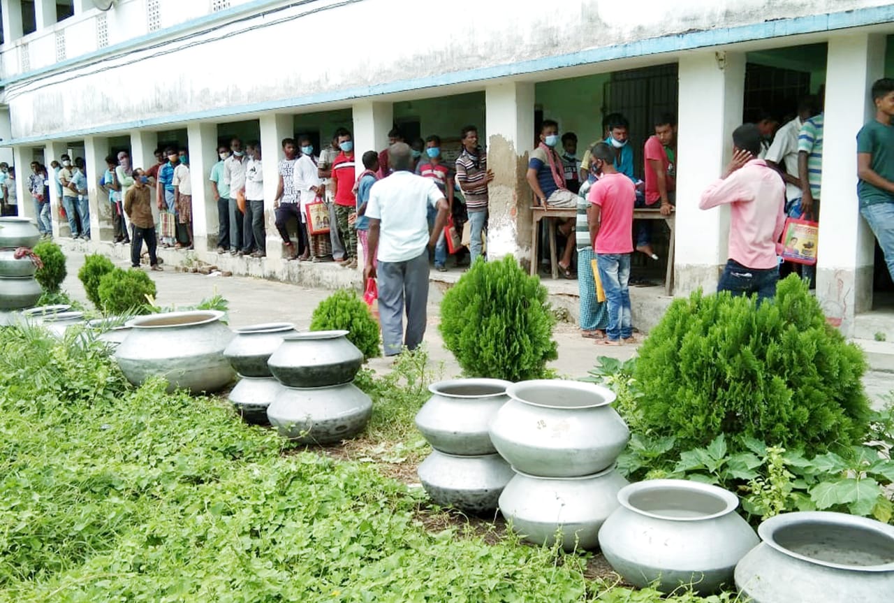 Cyclone Yaas has affected the coastal Odisha and West Bengal including Sunderban and damaged the agricultural crops including fisheries and livestock. To support these rural distressed people ICAR-CIFRI extended the help under SCSP programme to rejuvenate their livelihood by providing fisheries inputs for their small and marginal ponds. The support is provided to 14 GPs of two CD Blocks (Gosaba & Basanti) covering 32 hamlets having pond size of 0.02 ha to 0.04 ha in their backyards. A 2-Days mass awareness camp-cum-input distribution was carried out in collaboration with Rotary Club of Bhubaneswar Royal and Kultoli Milan Tirtha Society at Narayantala Ramkrishna Vidya Mandir playground of Kultoli, S24Pgs covering 500 beneficiaries (250 beneficiaries in each day). This includes 20% women SC beneficiaries also. The inputs such as 105 kg of feed, 750 nos of advanced fingerling and 20 kg lime were provided to each fisher. The lime was initially provided on 25th August to improve the pond water condition prior to one week stocking of fish fingerlings.