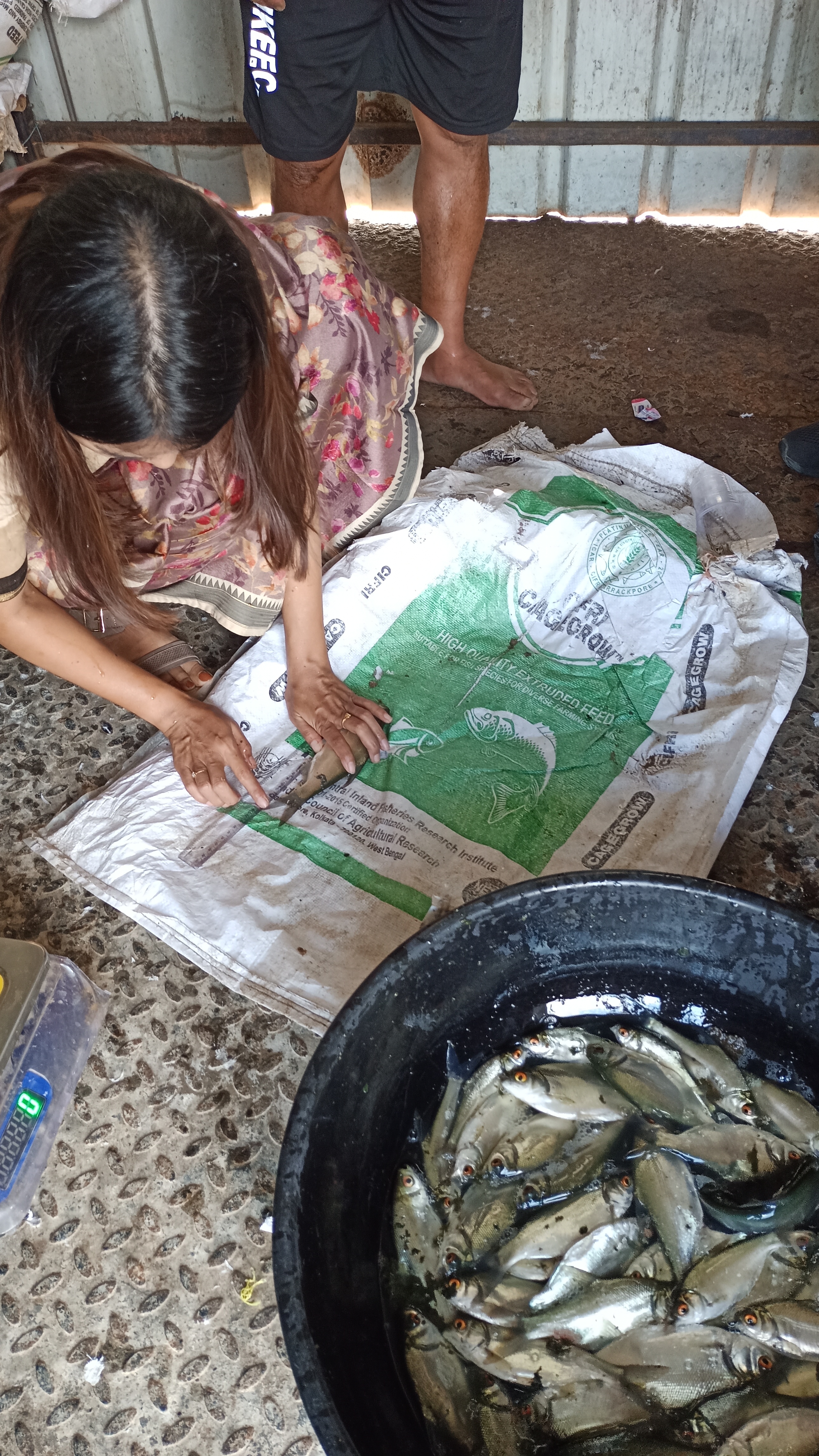 ICAR-Central Inland Fisheries Research Institute (CIFRI), Barrackpore in collaboration with the Department of Fisheries, Govt. of Manipur had successfully carried out culture of the endemic carp, Osteobrama belangeri in HDPE modular cages in Takmu pat, Bishnupur district of Manipur under the NEH component of ICAR-CIFRI. Fingerlings of O. belangeri (7-10 g) were stocked in 10 cages (individual cage dimension of 6 x 4 x 2 m) and reared for 6 months and fed with CIFRI CageGrow feed twice-a-day @ 3-5% body weight. After the culture duration, the fish had grown to an average weight of 120 g per fish. Some of the smaller individuals were released in the pat (lake) for their further growth and conservation purpose. On the occasion of final harvesting and release of fish, a field-day was conducted on 28.10.2021 at Takmu pat cage culture site to share the results with the fishery officers, fishers and other participants on cage farming of indigenous species having high local demand and solicit suggestions for future experiments.