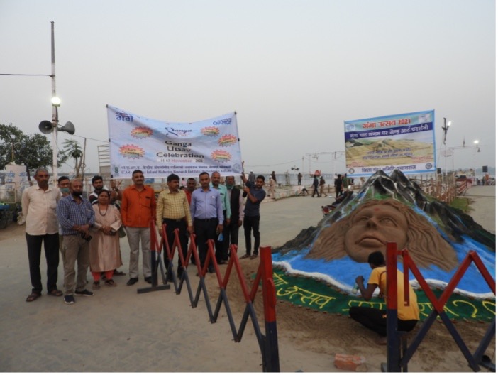 ICAR-CIFRI celebrated Ganga Utsav 2021 during 1st-3rd November, 2021 under Namami Gange programme and different activities were performed. On the 1st November ‘Ganga Mashal’ (lantern) run was organized from Lete Hanuman Mandir to Sangam Nose, Prayagraj and an awareness programme was also conducted at the end of the event. Ganga Aarti & Deepdan were performed at Ramghat and Ganga pledge was taken at the end of the occasion on 2nd November. On the last day i.e. 3rd November Ganga Goshthi (conference) was organized at Minto Park, Prayagraj to sensitize the people for keeping Ganga clean and unpolluted. The whole event was organized with the collaboration of Namami Gange, Ganga Vichar Manch, District Ganga Samiti, Ganga Task Force and Forest department of Uttar Pradesh. Different speakers addressed the gathered mass on different occasions. Dr. Dharm Nath Jha (Scientis-in-charge), Dr Abasar Alam (Scientist), Dr. Kalpana Srivastava (CTO), Shri Saket Kumar Srivastav (CTO), Shri Vijay Kumar (STO), Dr Sandeep Kumar Mishra (YP-II), Shri Sushil Kumar Verma (YP-II), Shri Shiv Janam Verma (YP-I) and others actively participated and help in organisation of this programme.