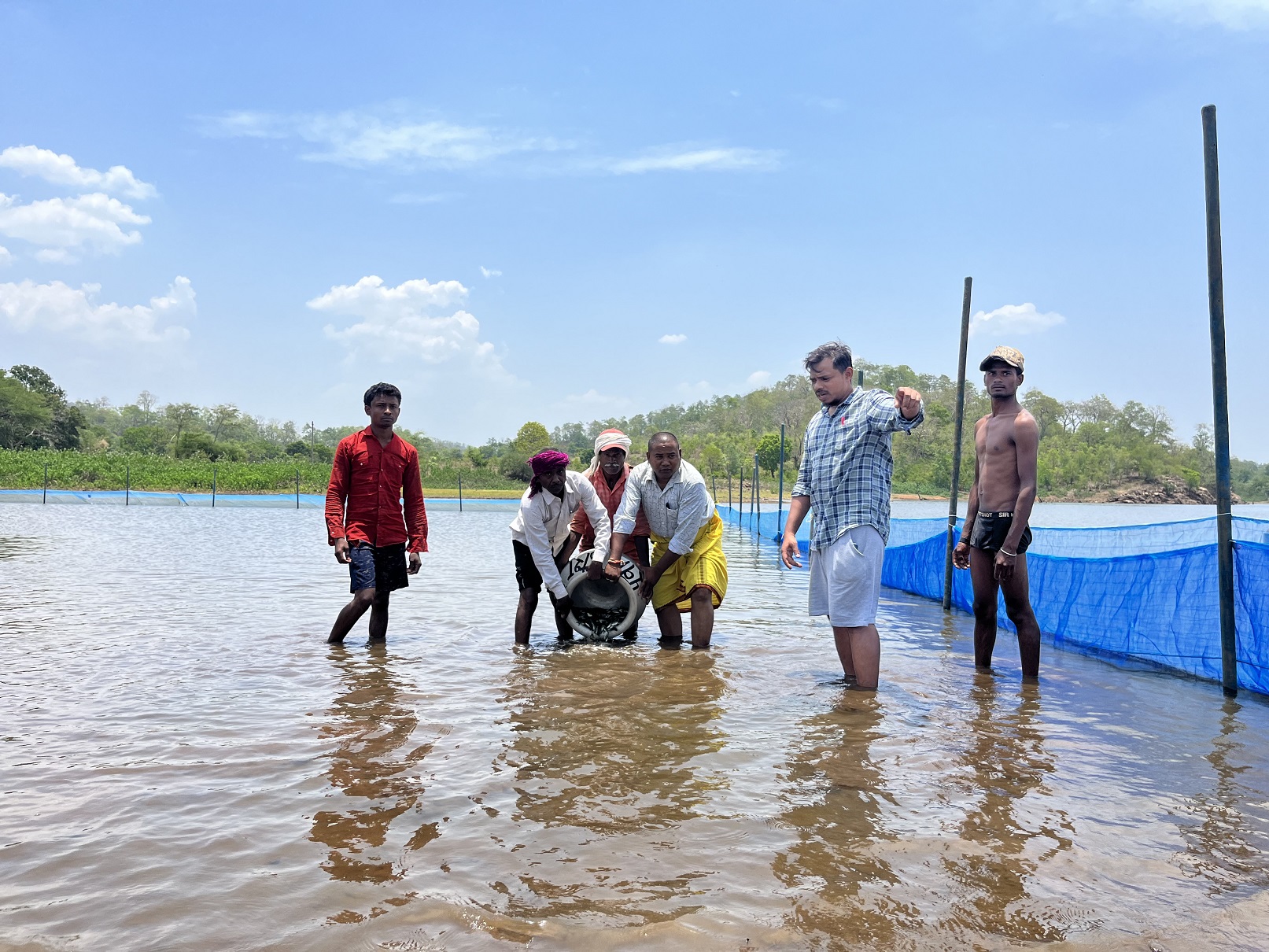 Pen culture intervention is a tool to raise in situ fish seed in the reservoir which will not only improve the production of the reservoir but also reduce the cost of production, subsequently the livelihood of the fishers will be improved. ICAR-CIFRI organized Penculture demonstration programme in collaboration with DOF, Chhattisgarh in five small reservoirs viz. Baherakhar, Sutiyapath, Rabo, Paralkot and Ghunghutta of the state during 24th May to 4th June,2023 aiming to raise in situ fingerling in the pen for enhancing the production of the reservoir cost-effectively. Two scientific teams demonstrated CIFRI HDPE installation and stocking in the selected reservoirs. After the demonstration sensitization programme was organized at the reservoir site to aware the beneficiaries about the importance of Pen culture for fish production enhancement in the reservoirs. A total of 340 tribal beneficiaries attended the demonstration cum awareness programme.