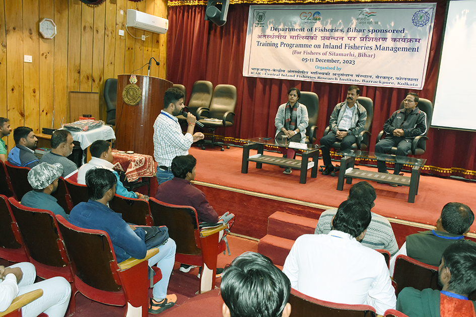 Sitamarhi is an Indian city in the Mithila region of Bihar, the name of the district was kept as an honour to the birthplace of the goddess, Sita. A total of 31 young fish farmers from this district were imparted training during 5-11 December 2023. ICAR- Central Inland Fisheries Research Institute organized this seven-day capacity-building programme on “Inland Fisheries management” to develop skills in water quality management, nursery and rearing of pond culture, enclosure culture for livelihood improvement, and induced breeding and hatchery management.