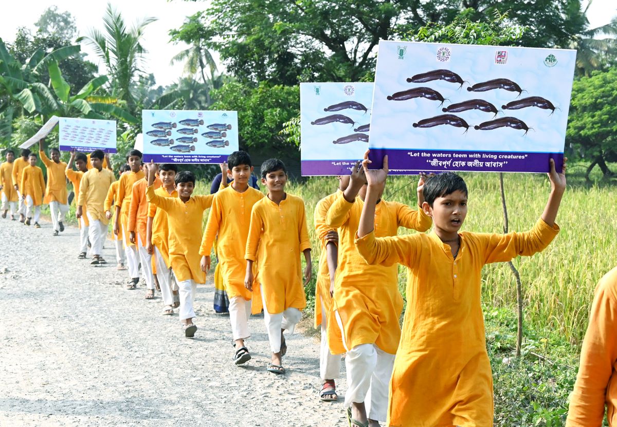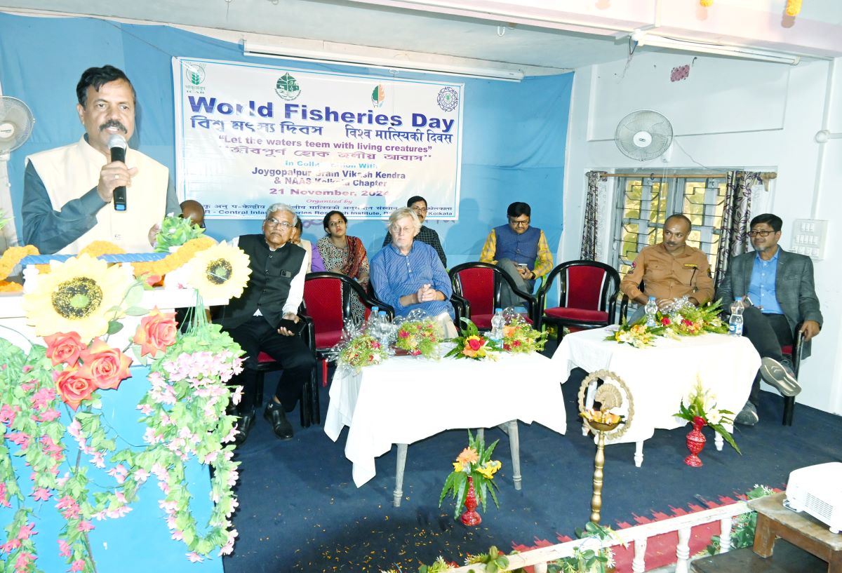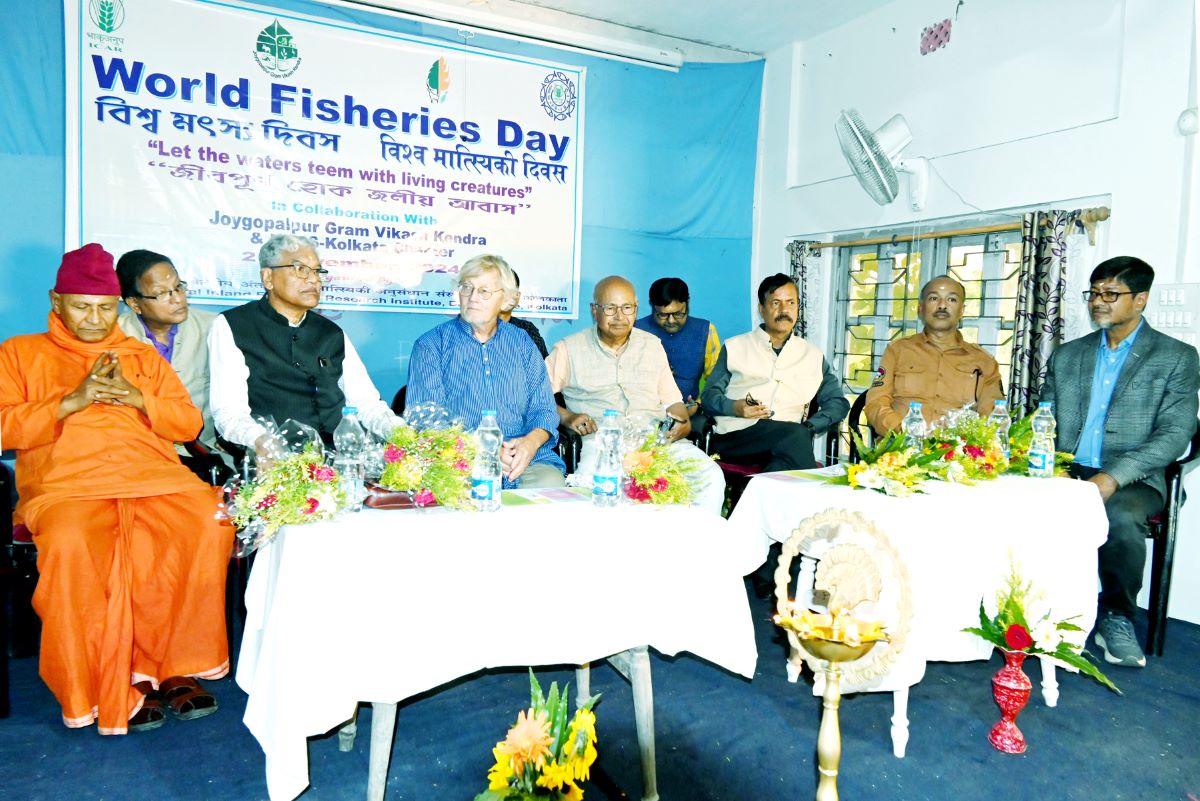 ICAR-Central Inland Fisheries Research Institute (ICAR-CIFRI) celebrates World Fisheries Day yearly at its headquarters and regional centres. In alignment with the 2024 theme, the institute observed the event in Basanti block, Sundarbans, in collaboration with Joygopalpur Gram Vikash Kendra (JGVK) and NAAS Regional Chapter, Kolkata. About 330 small-scale fishers and fish farmers, including 255 women were sensitized through this programme. Additionally, students also participated in learning about sustainable fisheries practices. Esteemed guests, including Dr. Purnendu Biswas, former Vice Chancellor of WBUFAS; Mr. Ganesh Sengupta, Chairman IGF, Denmark; and Mr. Niels Bo Karlsson from Denmark, graced the occasion. The celebration started with a Rally consisting of students, fishers, fish farmers, NGO workers, Scientists and others. The aim of the rally was to raise awareness about the importance of Indigenous fish species; about hilsa conservation and aquatic bio-diversity conservation. Dr Purnendu Biswas, Former Vice Chancellor of WBUA&FS, addressed the audience and also highlighted the importance of the conservation of aquatic life to meet SDG goals.