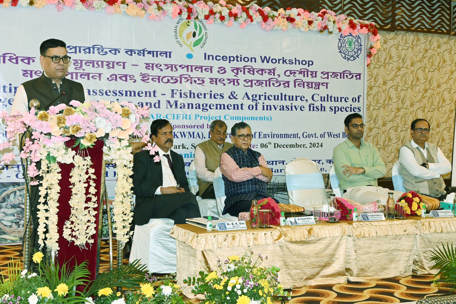 Inception Workshop of the project entitled "Multiple value assessment - Fisheries & Agriculture, Culture of indigenous fish species & Management of invasive fish species" was held on 06 th December, 2024 at Nalban Food Park, Saltlake, Kolkata with gracious presence of Dr Rajesh Kumar, IPS, Principal Secretary, Dept of Environment, West Bengal as Chief Guest, Dr Kalyan Rudra, Chairman, WBPCB as Special Guest, Shri Atanu Kumar Roy, Sr SPL Secretary, DoF, WB as Special Guest, Shri Smrutiranjan Mohanty, IAS, Director, DoF, West Bengal as honoured Guest including Ms Sarmistha Das, IAS, MD, BENFISH. Other officials of EKWMA, DoF, WRIDD, WBPCB, Dept of Agriculture, Horticulture, KMC, BMC, IESWM, WBUAFS, ICAR institutes - CIFA, CIFE, NBSSLUP also took part showing solidarity to ongoing team activities led by CIFRI. Dr. Basanta Kumar Das, Director, ICAR-CIFRI conducted the program leading from front involving his team associated with this .