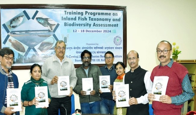 The inland capture fisheries data has always been impaired by the ‘taxonomic impediment’ arising out of the shortage in taxonomic expertise, taxonomic collections, field guides and other identification tools as well as the difficulty in accessing the existing taxonomic literature. The ICAR–CIFRI organized seven days training on “Inland Fish Taxonomy and Biodiversity Assessment” during 12-18 December 2024 to address this research constraints that hampers the fish biodiversity research in Indian inland waters. Eleven participants attended the training, comprising three M.F.Sc. students and two Ph.D. candidates from the West Bengal University of Fisheries and Animal Sciences, two M.Sc. students from the Rani Lakshmi Bai Central Agricultural University in Jhansi, two technical assistants from ICAR-CIFRI in Barrackpore, and one research scholar each from Netaji Subhash Open University and the NMCG Project.