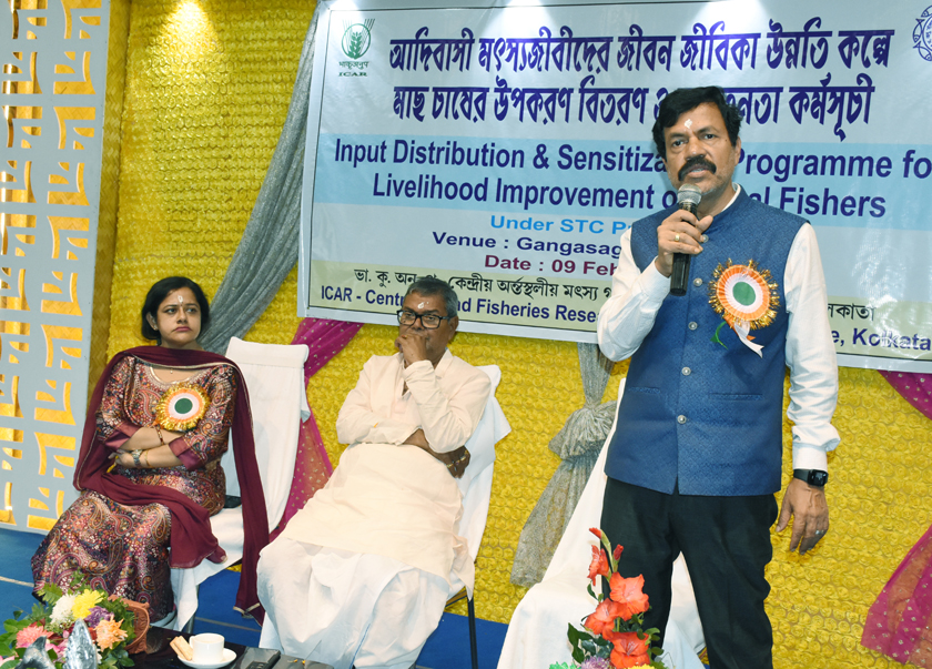 In order to strengthen the rural economy, ICAR-CIFRI has encouraged fishermen to start small-scale inland fisheries in their backyard rain-fed water bodies over the past 12 years. Every household has received fisheries inputs like, fish seed, fish feed, lime, and medicine from ICAR-CIFRI. The support is provided to 240 ST women fish farmers belonging to 8 GPs of Sagar Community Development (CD) Block having pond size of 0.02 ha to 0.04 ha in their backyards under STC programme. A mass awareness camp was also carried out in collaboration with Sagar Krishnanagar Swami Vivekananda Youth Cultural Society at Gangasagar. The MIC praised the ICAR-CIFRI initiative, which was the first of its type in the Sunderban region and greatly aided in improving the livelihoods of a large number of beneficiaries in the fish culture sector. Dr. B. K. Das, Director, ICAR-CIFRI, Barrackpore, told that the initiative will benefit each fisherman participating in these extensive awareness-cum-input distribution programs. Additionally, he opined how this will improve their livelihoods and income, which will in turn increase their profits for sustainable agricultural methods that include fish culture.