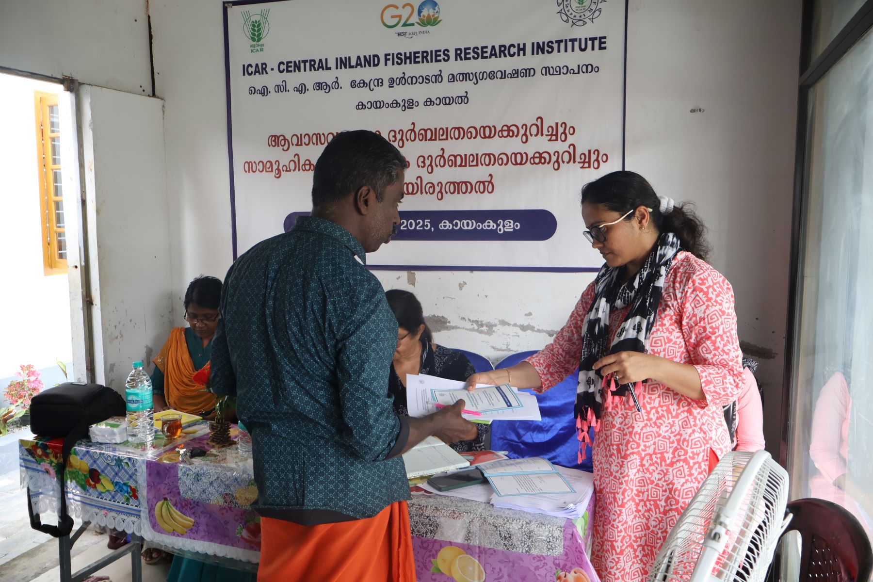 Multi-dimensional vulnerabilities of inland fishers of Kayamkulam estuary was assessed at Choola theruvu , Kayamkulam on 16.10.25. The programme was conducted under the auspices of the project titled 'Fishery resource assessment and ecological monitoring of Kayamkulam Estuary, Kerala for sustainability'.