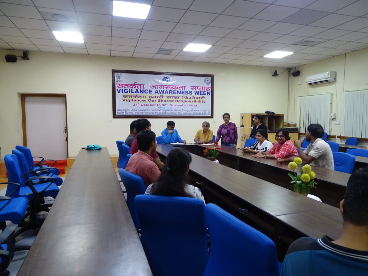 As part of the observance of Vigilance Awareness Week 2025, the ICAR–Central Inland Fisheries Research Institute (ICAR-CIFRI), Barrackpore, organized an Extempore Speech Competition at its headquarters on October 29, 2025. The event saw the active participation of eleven contestants, each delivering an impromptu speech on topics highlighting the significance of vigilance, integrity, and ethical conduct.