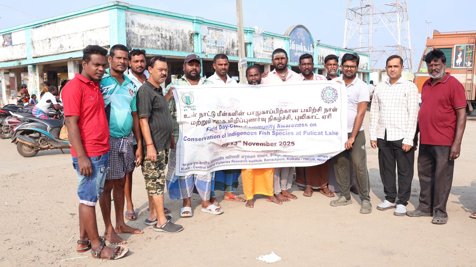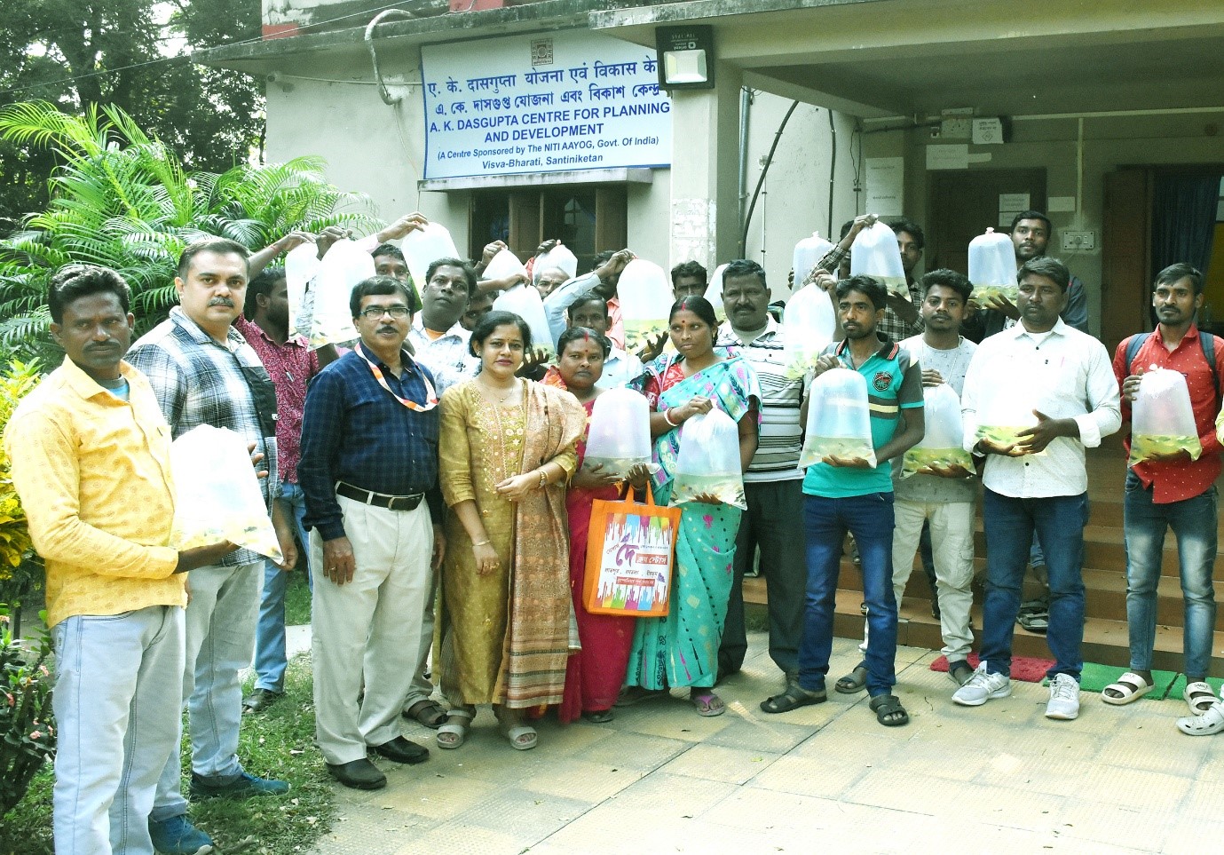 Professor Bidhan Ch. Roy, Chair Professor, AKD Centre, delivered an encouraging message and assured continued institutional support for the initiative. Practical demonstrations by ICAR-CIFRI experts helped participants gain hands-on experience in ornamental fish culture. During the demonstration session, Shri Loknath Chakraborty, STO, CIFRI, interacted with beneficiaries and clarified their technical doubts.