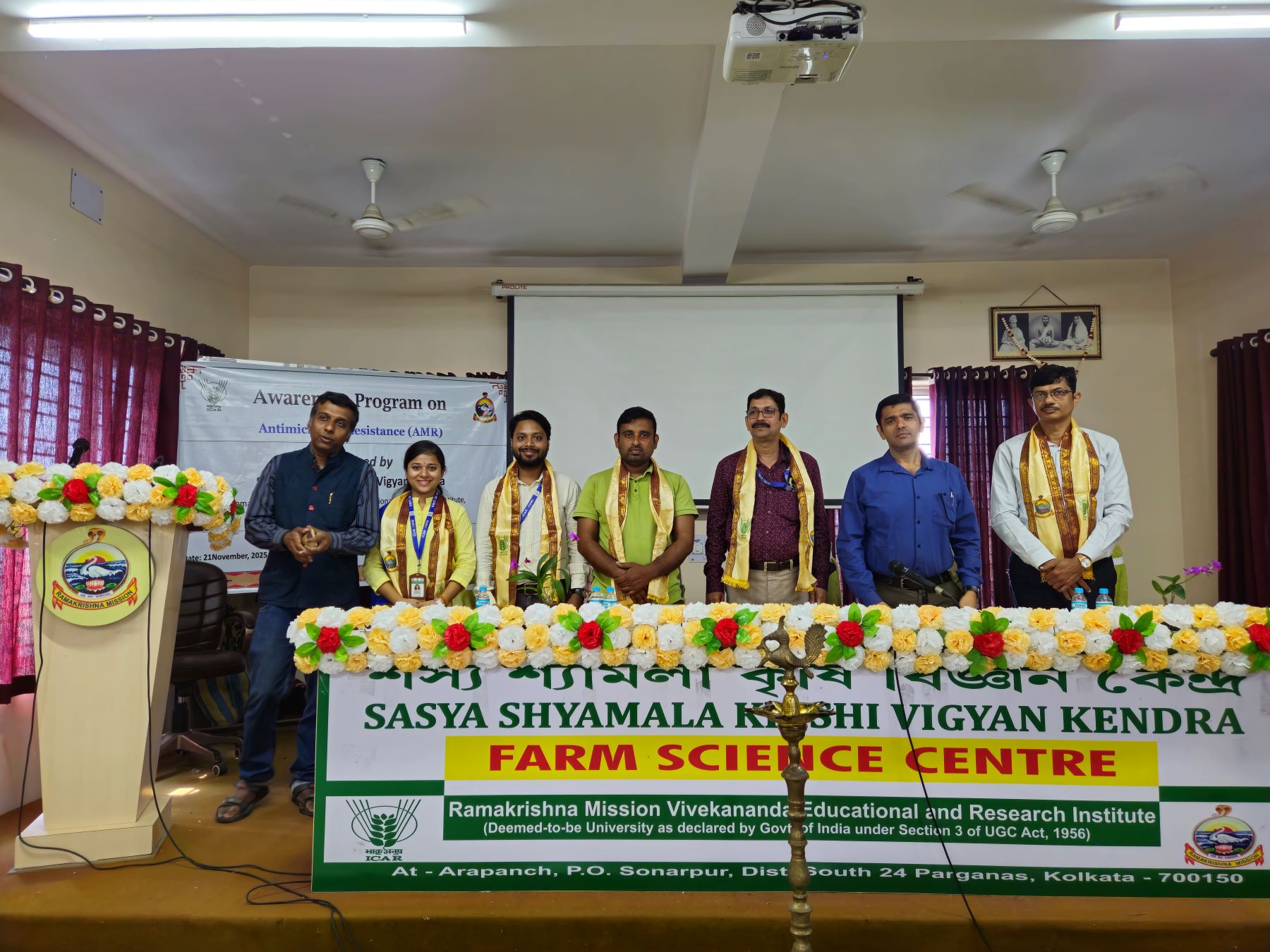 On 21.11.2025, an awareness programme was organised at Sasya Shyamala Krishi Vigyan Kendra (KVK), Sonarpur in the presence of Dr.Swagat Ghosh, Head KVK, Dr. Tapas Ghosal, Head ICAR-CIFE, Saltlake center, Dr.Samiran Bandyopadhyay, Principal Scientist of ICAR-ERS, IVRI and Dr. Sabaswarup Ghosh, SMS aimed to enlighten farmers and trainee participants on the growing challenge of AMR and promote responsible practices in agriculture and aquaculture. Nearby 200 pamphlets on Antimicrobial Resistance Awareness were distributed to educate the public about this worldwide concern. Dr. A. K Bera, Principal Scientist and Dr. Palash Ghorai, Young Professional-II delivered a speech highlighting the urgent need for awareness at the grassroots level, especially among farmers who play a crucial role in preventing the misuse of antimicrobials. The AMR Awareness programme yielded a positive impact on all participants. Farmers and trainees showed a better understanding of antimicrobial resistance and indicated their willingness to adopt safer farming practices. Overall, the programme contributed meaningfully to capacity building at the community level.