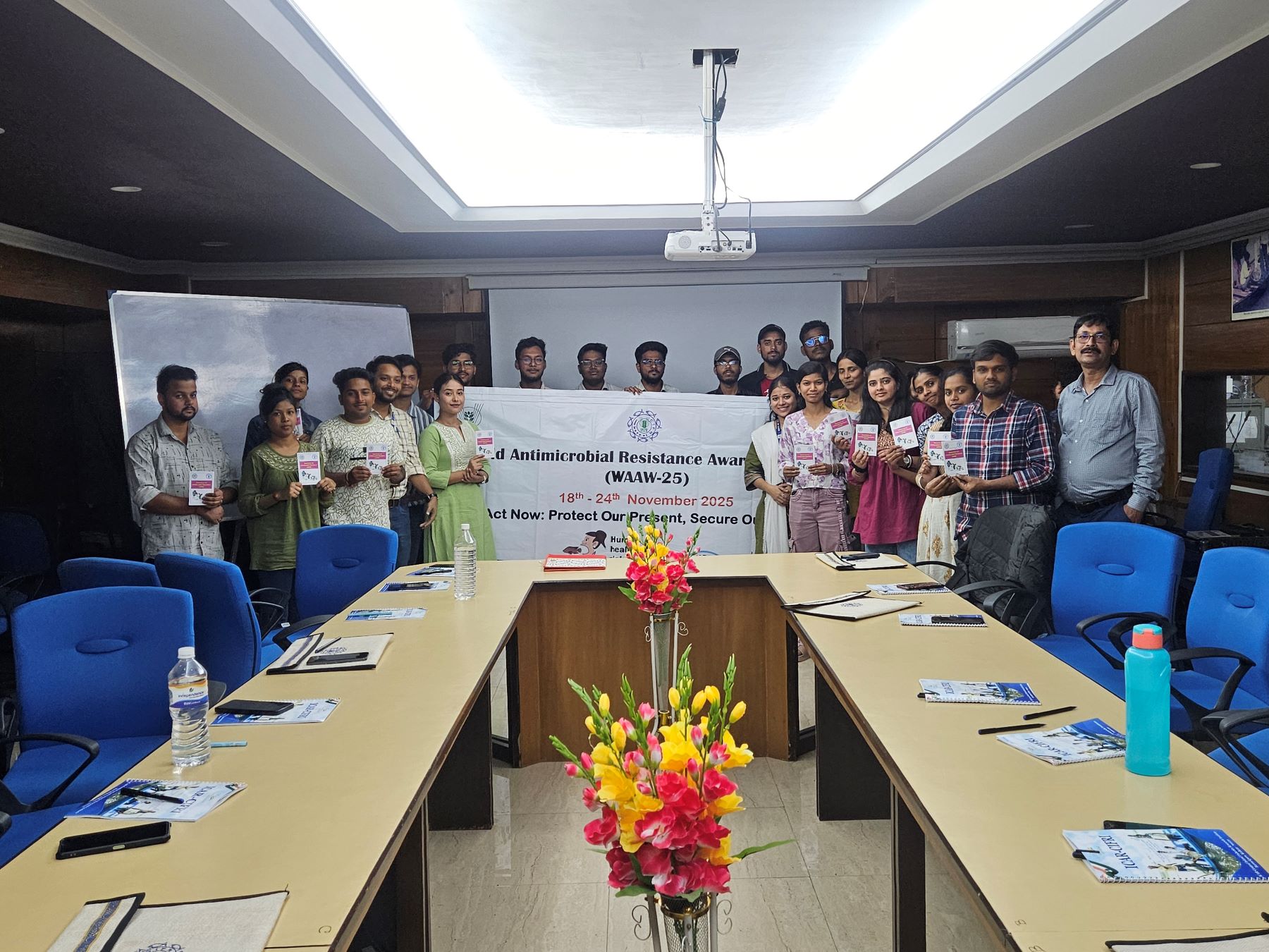 World Antimicrobial Awareness Week 2025 was successfully observed from 18-24th November 2025, centred around the global theme, Act Now: Protect Our Present, Secure Our Future. A series of programmes were organised for the institute’s trainees, farmers, college students and staff with the objective of enriching their understanding of AMR, its impact on human, animal, and aquatic health, and the vital role of responsible antimicrobial use in fisheries and aquaculture in mitigating the burning issue. Under the guidance of Dr. B. K. Das, Director, ICAR-CIFRI, all events were managed by Dr. A. K. Sahoo, Principal Scientist and Dr. A. K. Bera, Principal Scientist, Dr. Palash Ghorai, Young Professional-II and Miss Anushka Das, Young Professional-I.